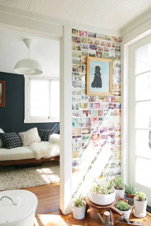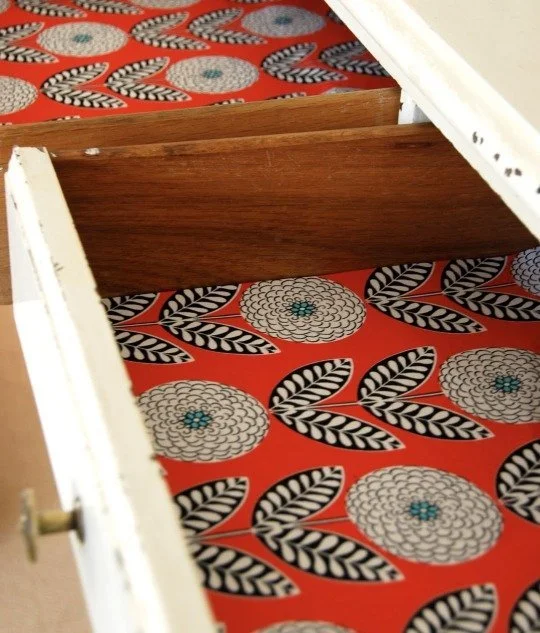 For unexpected spaces, use unexpected sources: try vintage on etsy, or even wrapping paper, which can be mod-podged to cover small spaces, say, behind your china.