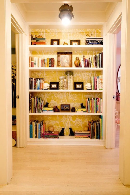 If you are hesitant, or you're on a budget, or you're, I don't know, married, you may want to consider starting quite small. Wallpapering unexpected places can have just as much impact as whole walls; good things come in small packages and all that.