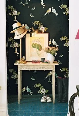 Spring is here, and if a big home renovation isn't in the cards for you, a little project just might be. I've had two friends ask me in the past two weeks about my favorite wallpaper resources, both for teeny-tiny powder rooms. Powder rooms and entry ways are terrific places for a splash of something daring.