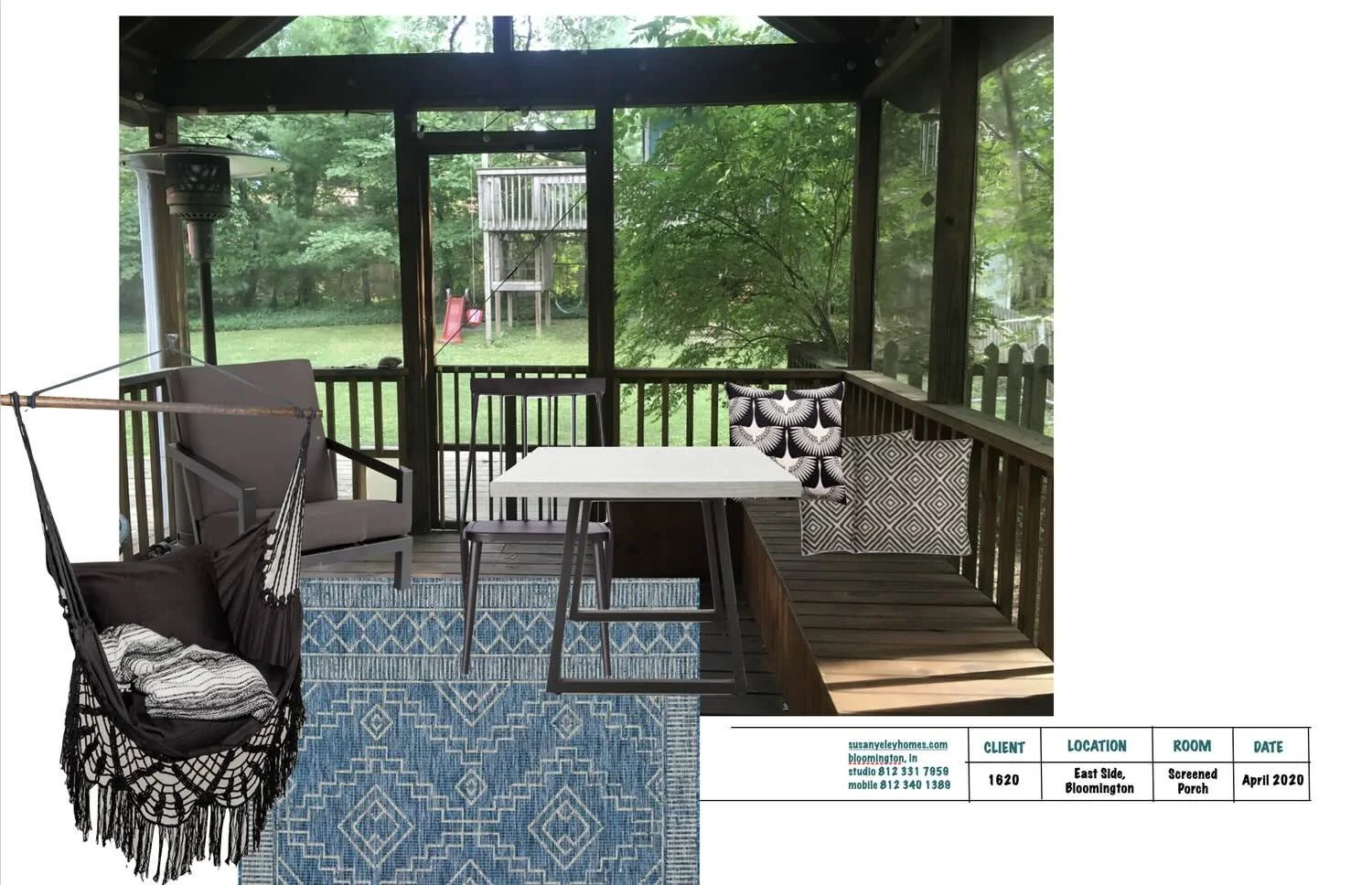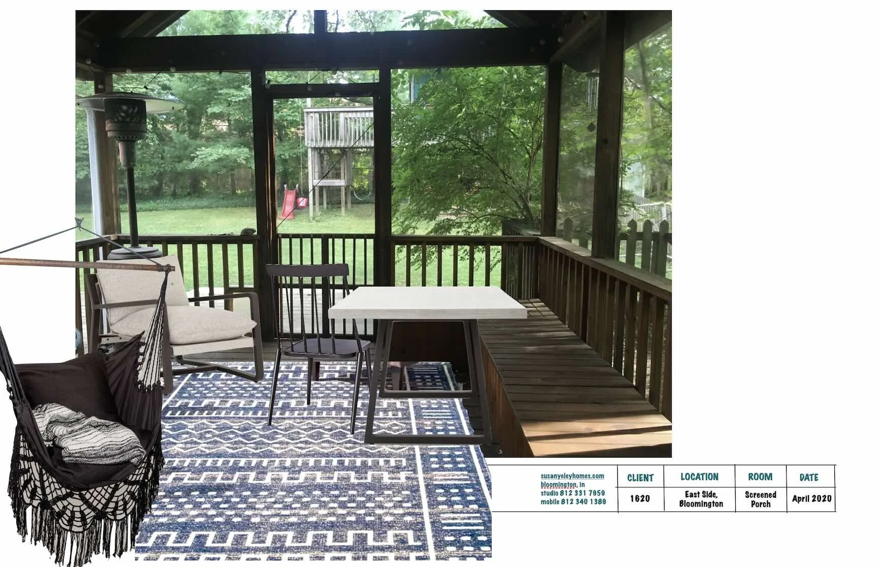 Behold, my screened porch. We built it on to the back of our house over a decade ago, so we could enjoy our little slice of green space without being eaten alive by Hoosier Mosquitos, who are ruthless and apparently have large family gatherings in my backyard with potlucks that last all summer. Furnished with an iron hand-me-down table and chairs and a loved-to-the-point-of-fraying-and-molding hammock swing, it has been a welcoming enough space for family and friends over the years. The heat lamp has made it possible for my husband, Brian, and his friends to watch soccer year-round out here, buffering their cries of victory and defeat from children sleeping inside the house (though I can’t say the same for the neighbors).