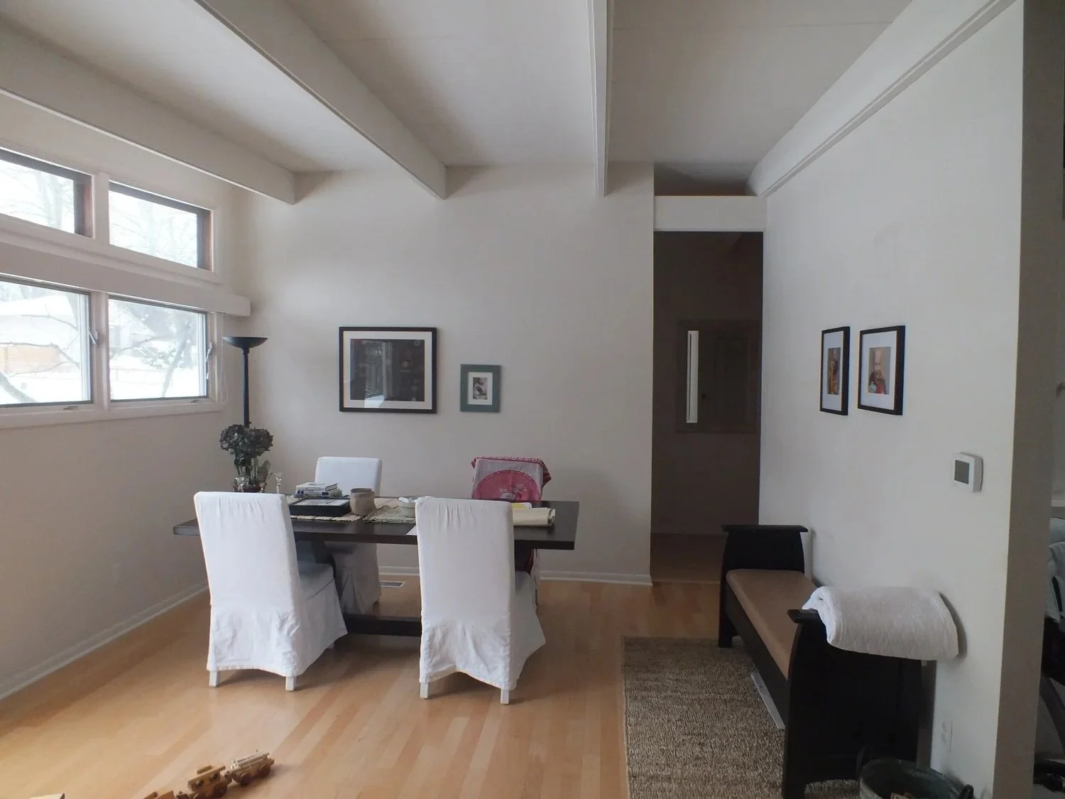 Dining table: Four Hands Cyrus / Dining chairs: Article Svelti / Rug: NuLoom Tribal Cora / Hanging chair: Etsy / Pillows: Etsy / Rattan chair: Article Aeri