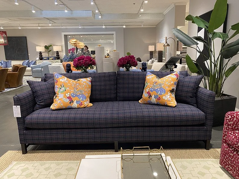 Without a designer, market access, or knowledge of dimensions, the average consumer can feel uncomfortable (no pun intended) sourcing pieces they haven’t sat on in real life. Unfortunately, there aren't many places near by where they can sit-test new upholstery for themselves. Luckily, in Bloomington we have Stahl Furniture - a local shop right downtown that carries one of our favorite upholstery lines, Rowe's Robin Bruce, so you can sit to your heart's content before making big furniture decisions, talk to experts about the brand's construction, and touch and feel all the fabric options.