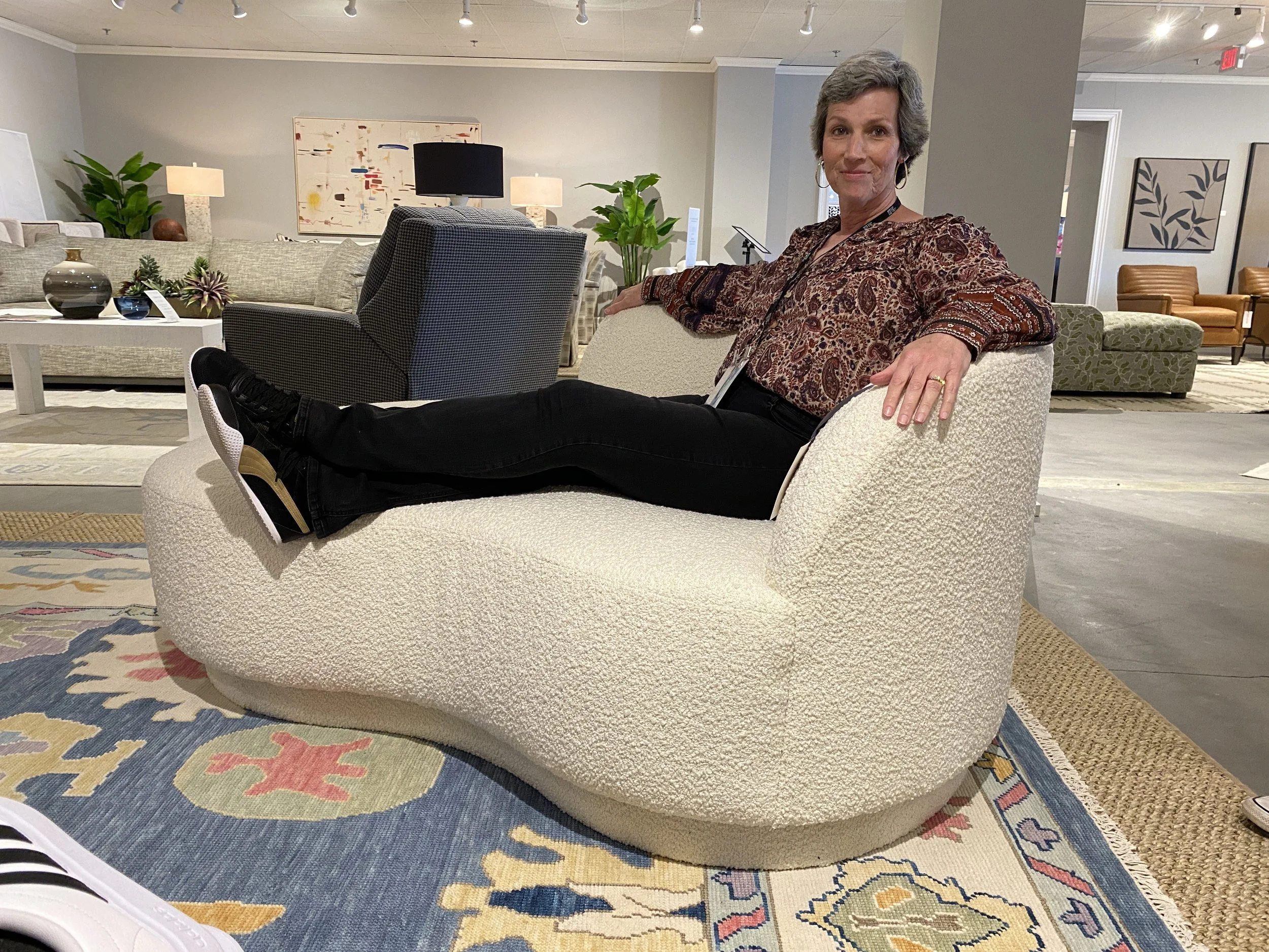 The Susans and Brianna trekked to High Point this spring for Market, and if we could sum up what we saw, it would have to be Luxury Vintage. Mohair and velvet in all shades of brown, retro textures and prints, Grandmillenial styling, and bold colors.