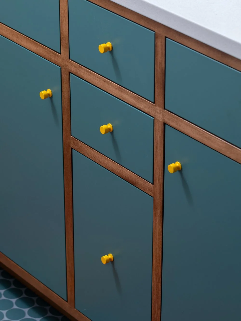 Design solutions - Our design team approached this bathroom renovation with the same care we bring to every client project. The compact galley layout presented familiar midcentury challenges: limited natural light, outdated fixtures, and inefficient storage. We ushered sunshine back in with a new skylight, having stolen the original window years ago for an ensuite bathroom addition. We updated the midcentury-era plumbing, electric and ventilation and raised the countertop from old-school 30" to now-standard 36" - a win for Susan’s not-short kids. Bright white walls became a canvas for colorful finishes, and new tile (concrete in the shower and porcelain on the floor) replaced dated vinyl flooring and a dull ceramic shower surround. Best of all, we ensured ample towel bars, hooks, vanity storage and shower niche space: plenty for everyone, plus sleepover friends and exchange students! Every element of this remodeled bathroom was purposefully placed to enhance both function and joy in this everyday space.
